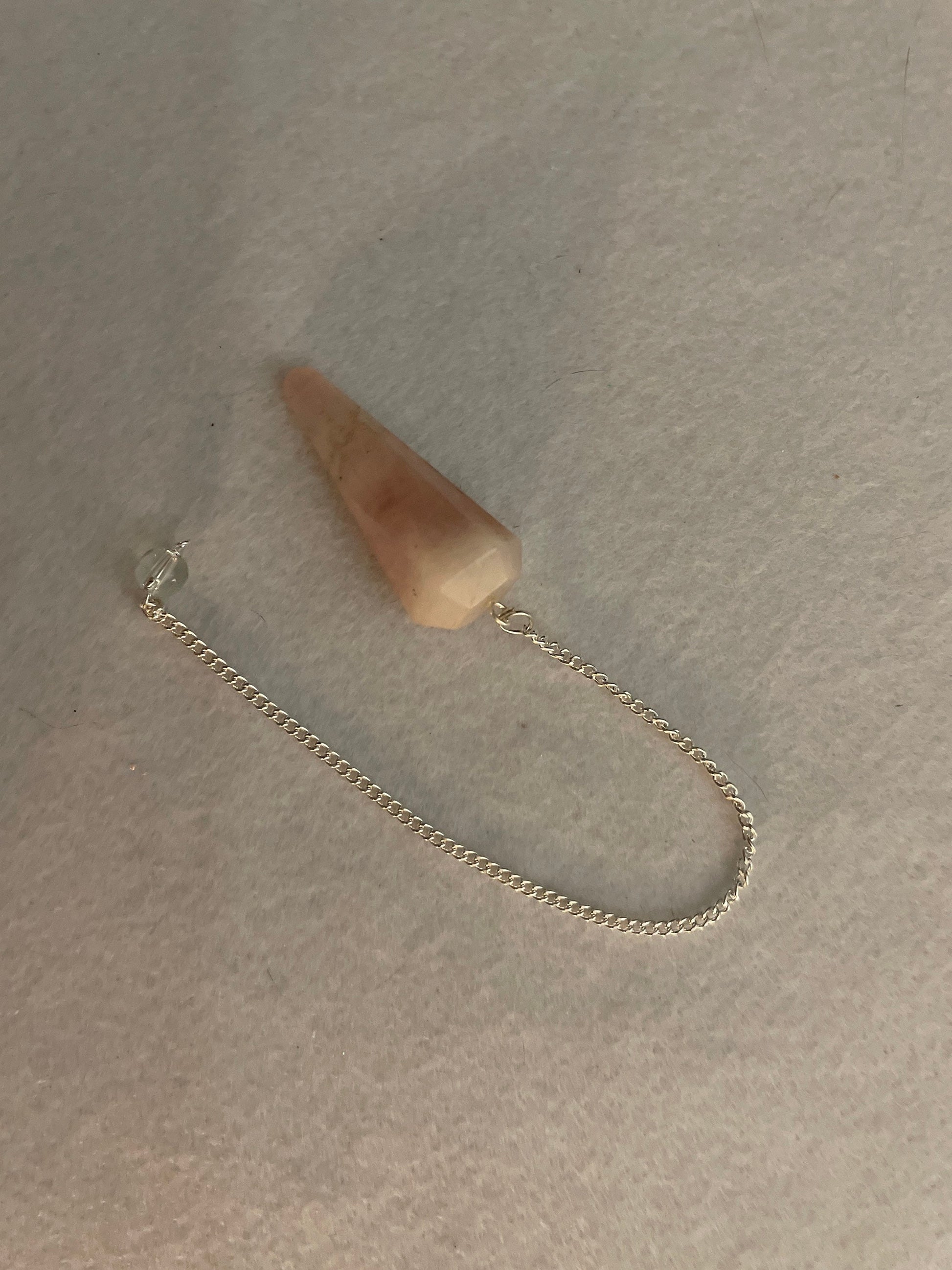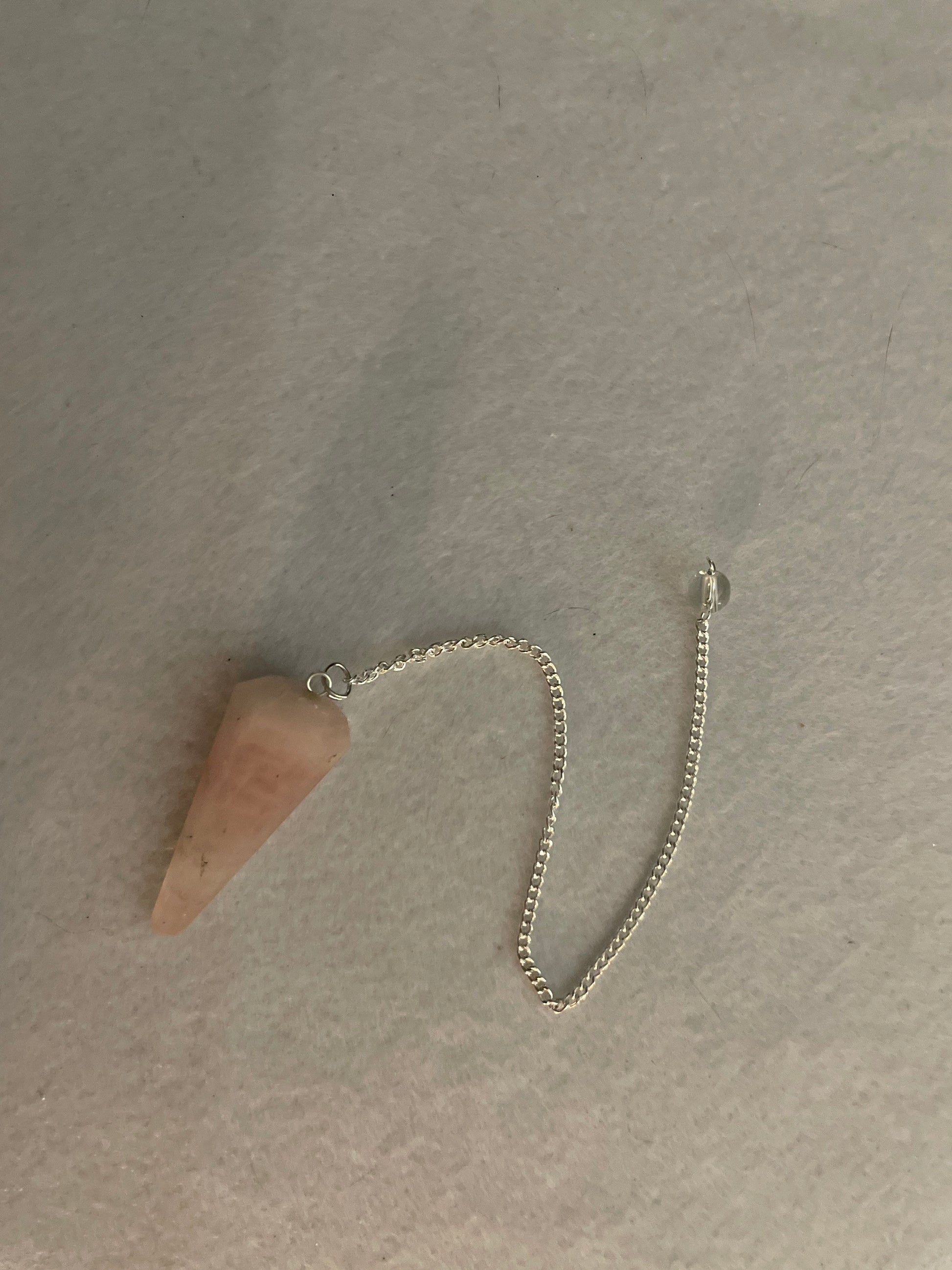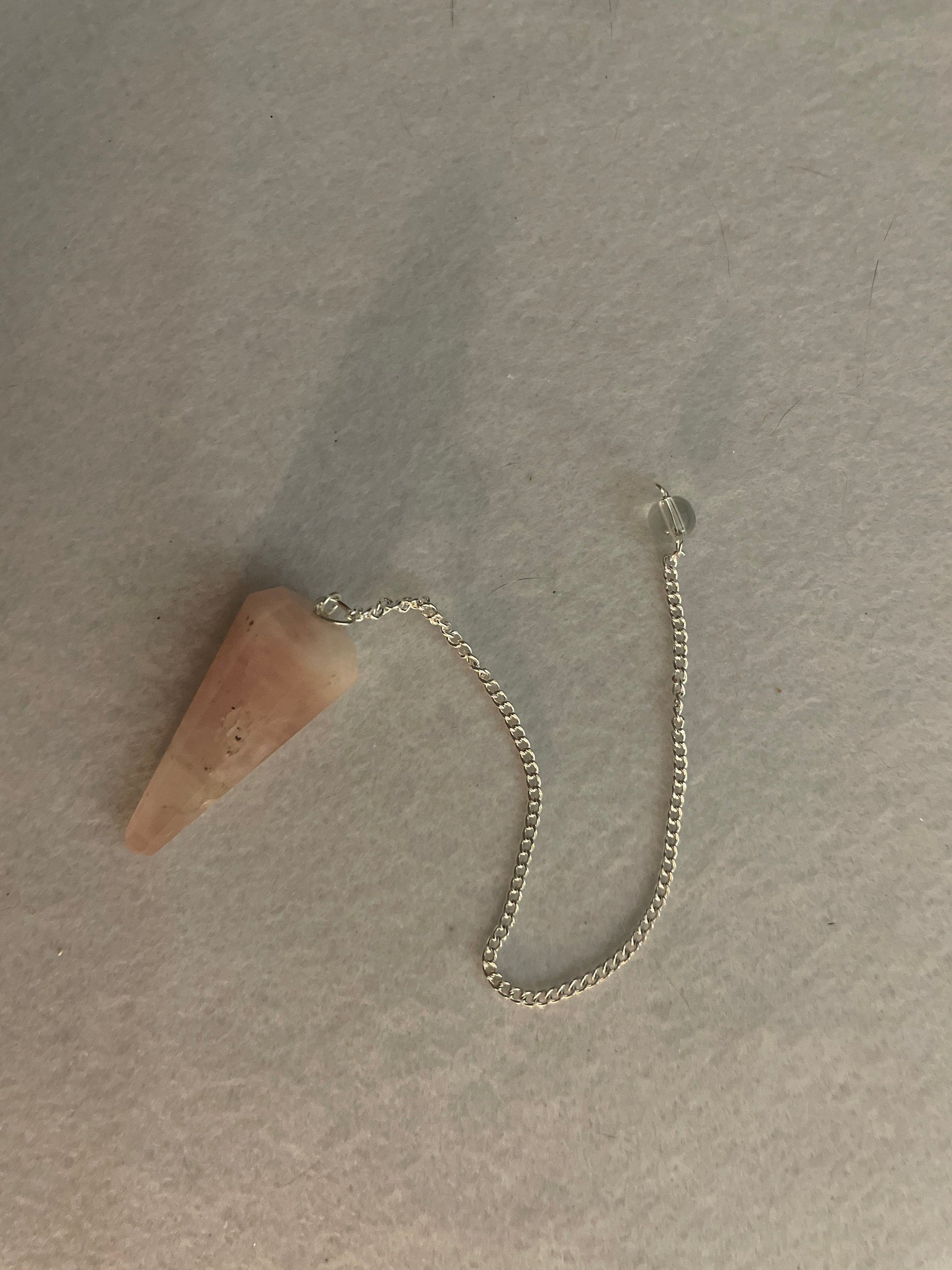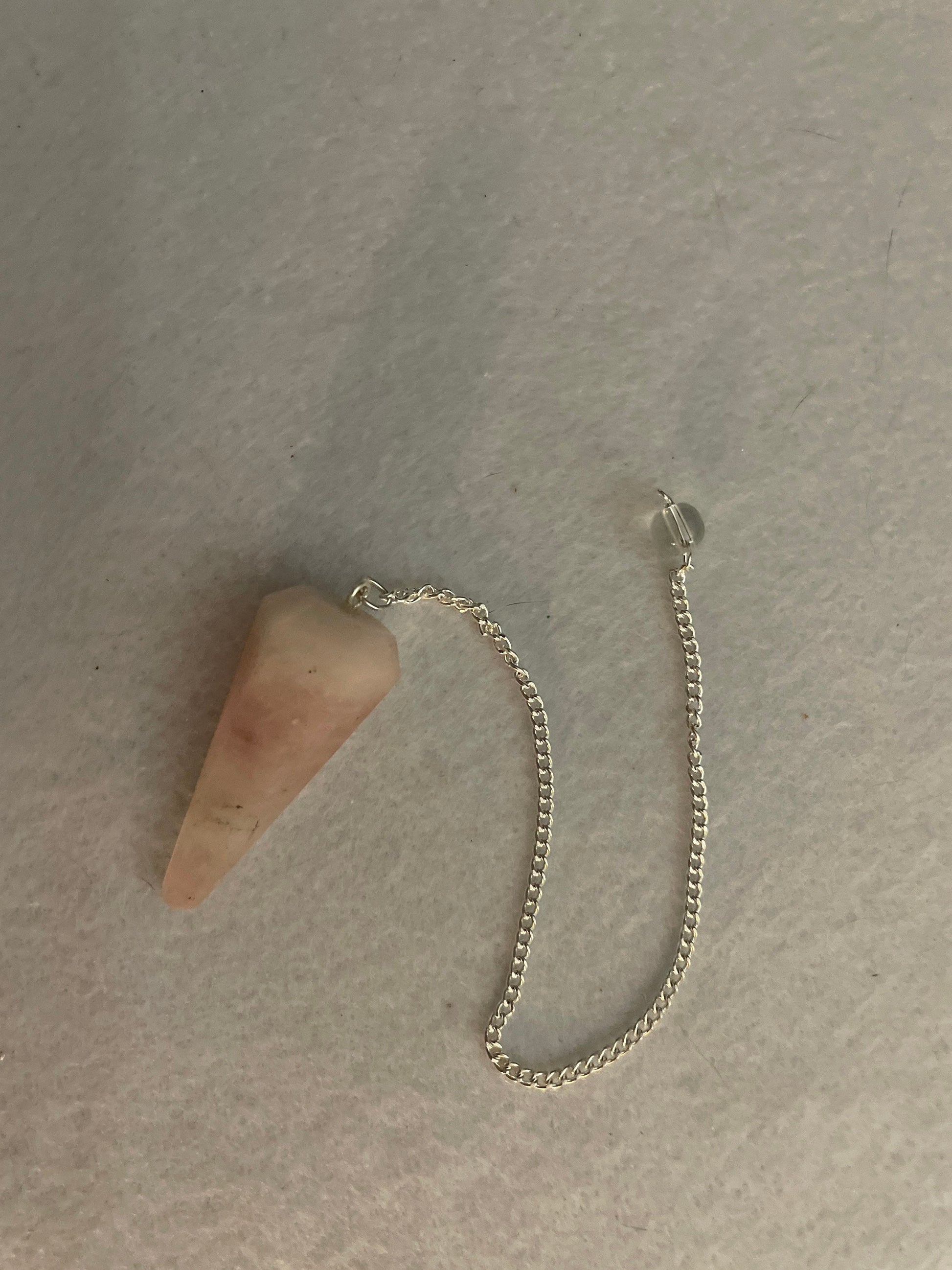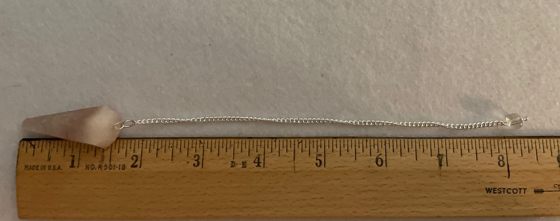 This beautiful Rose Quartz Pendulum is 1.65” and with chain is 8”