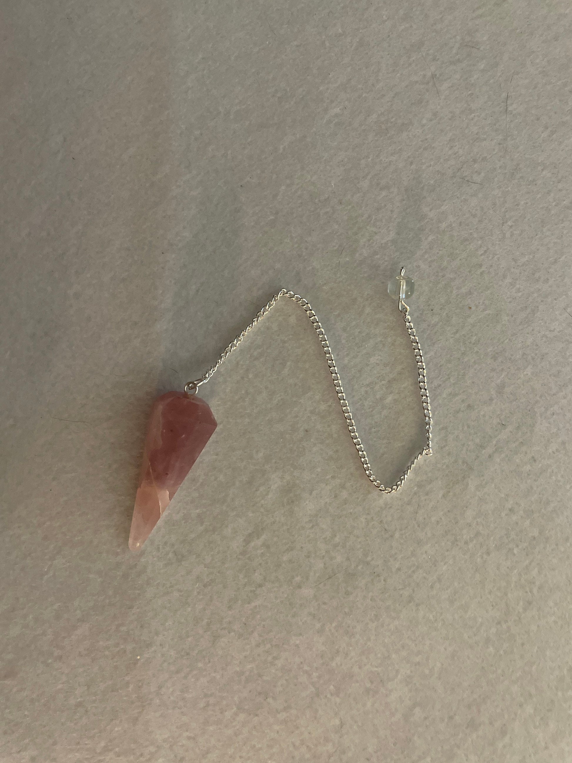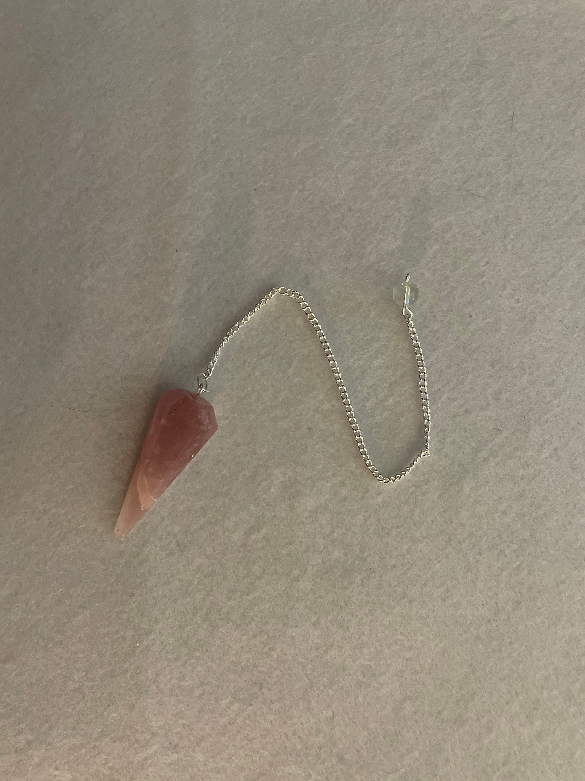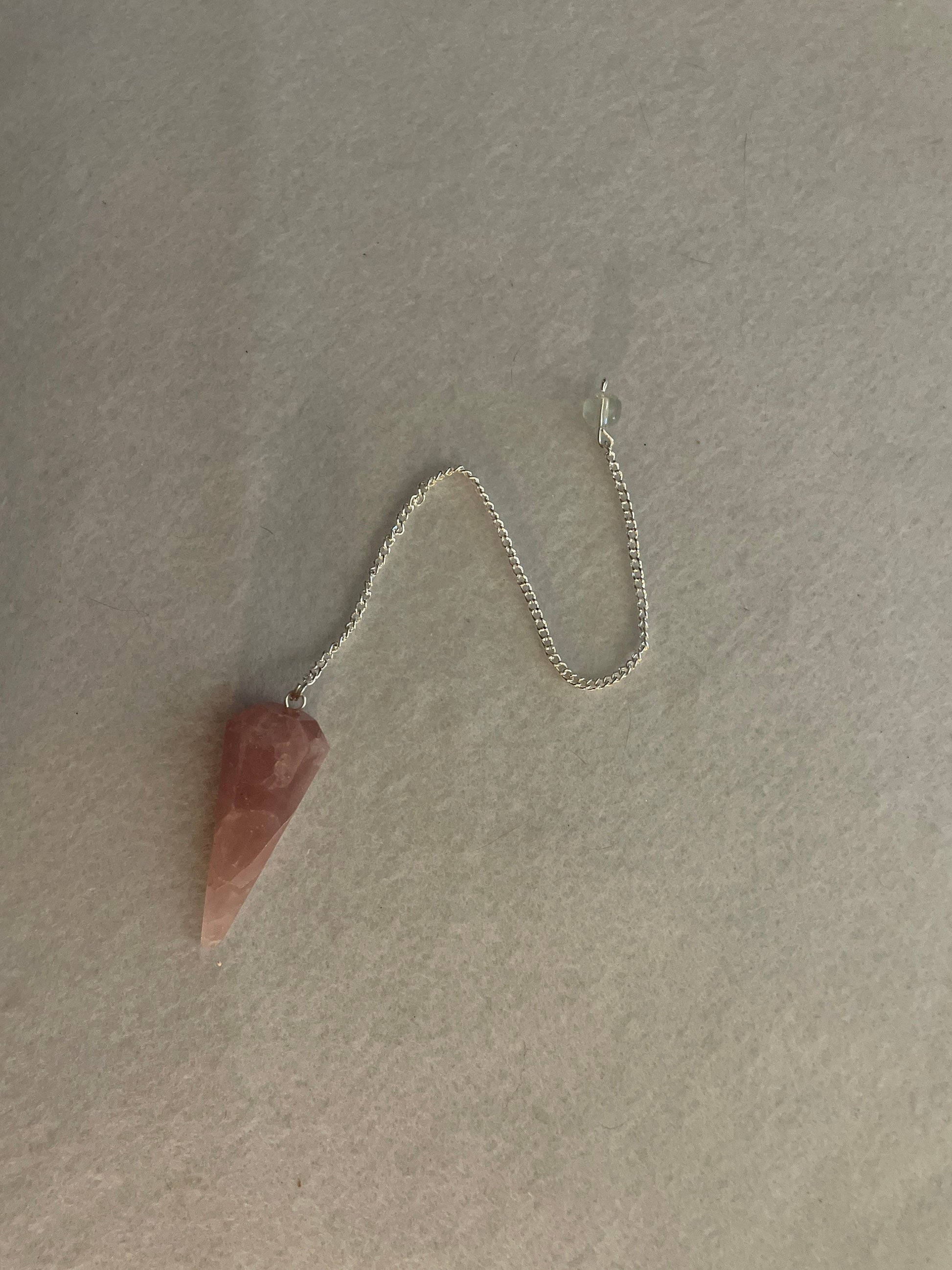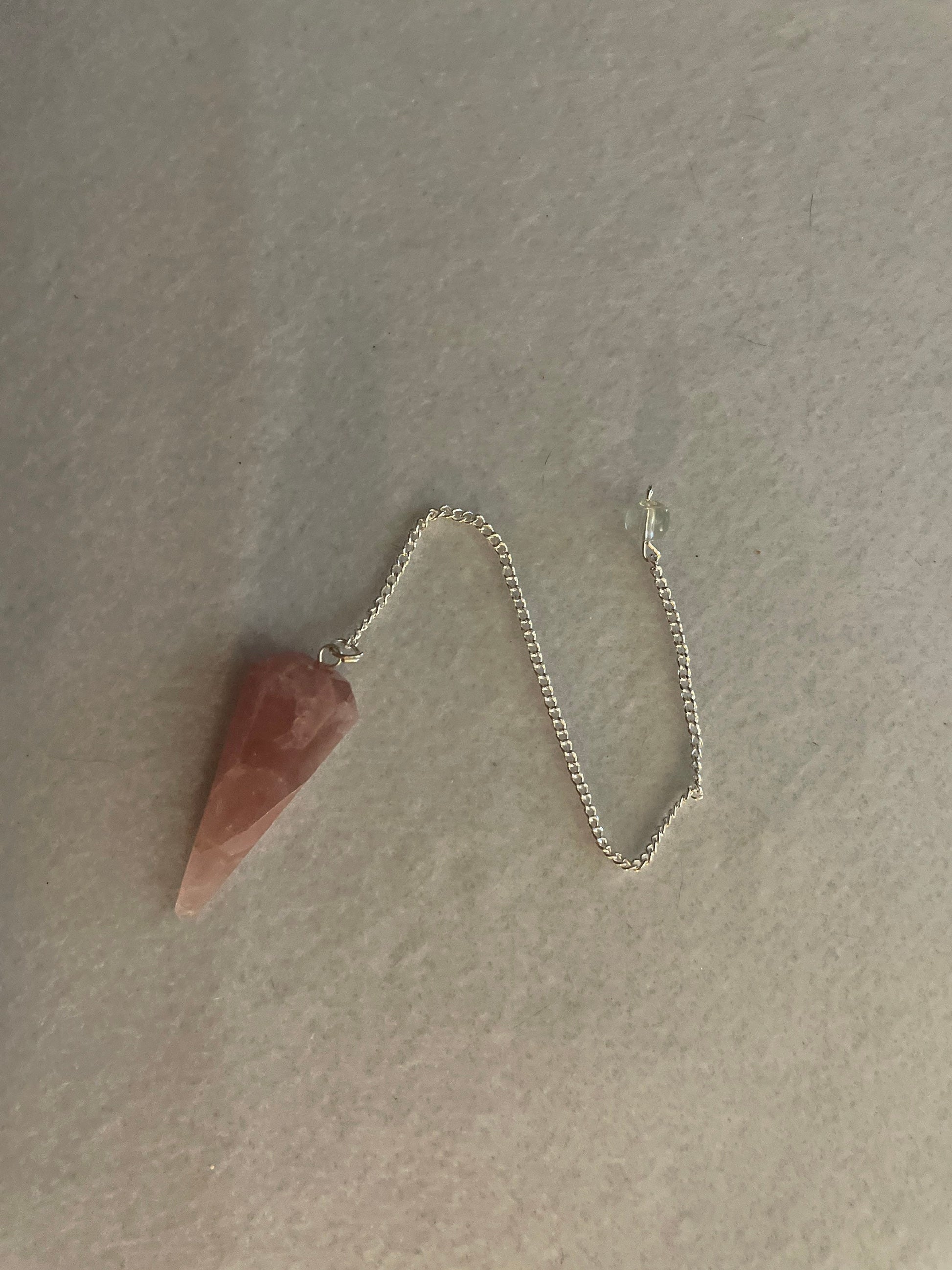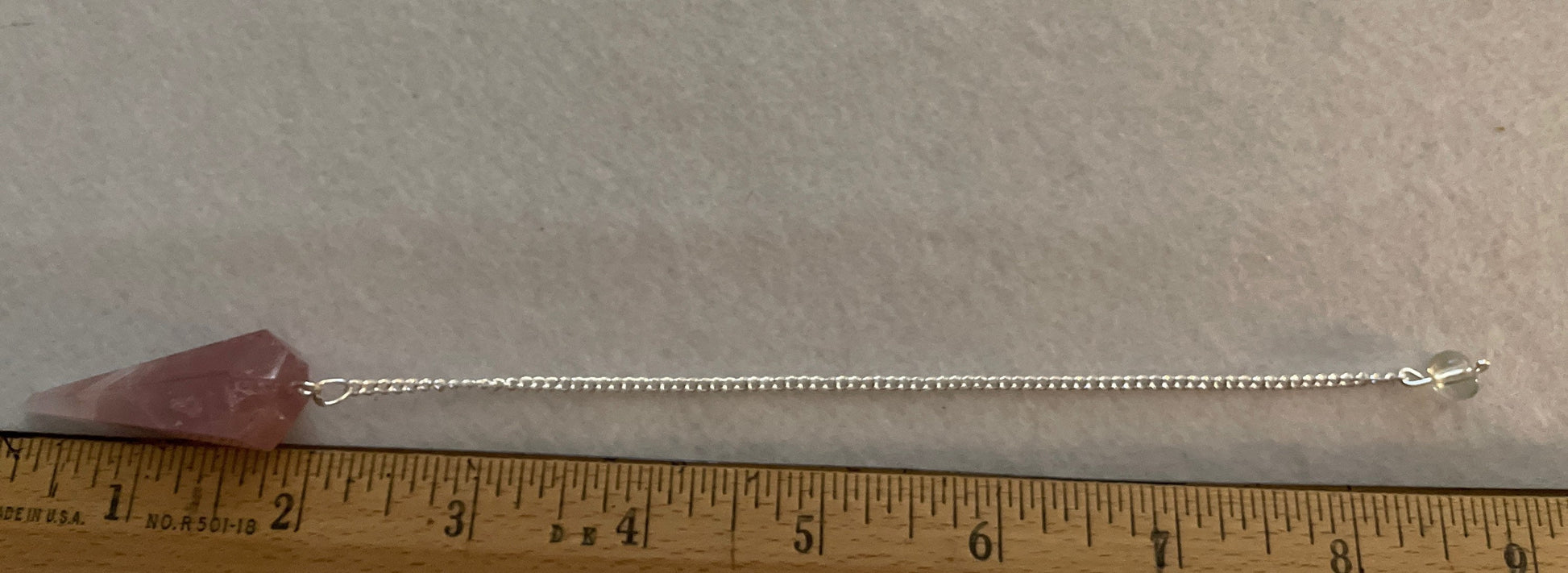 This beautiful Rose Quartz Pendulum is 1.75” and with chain is 8.50”