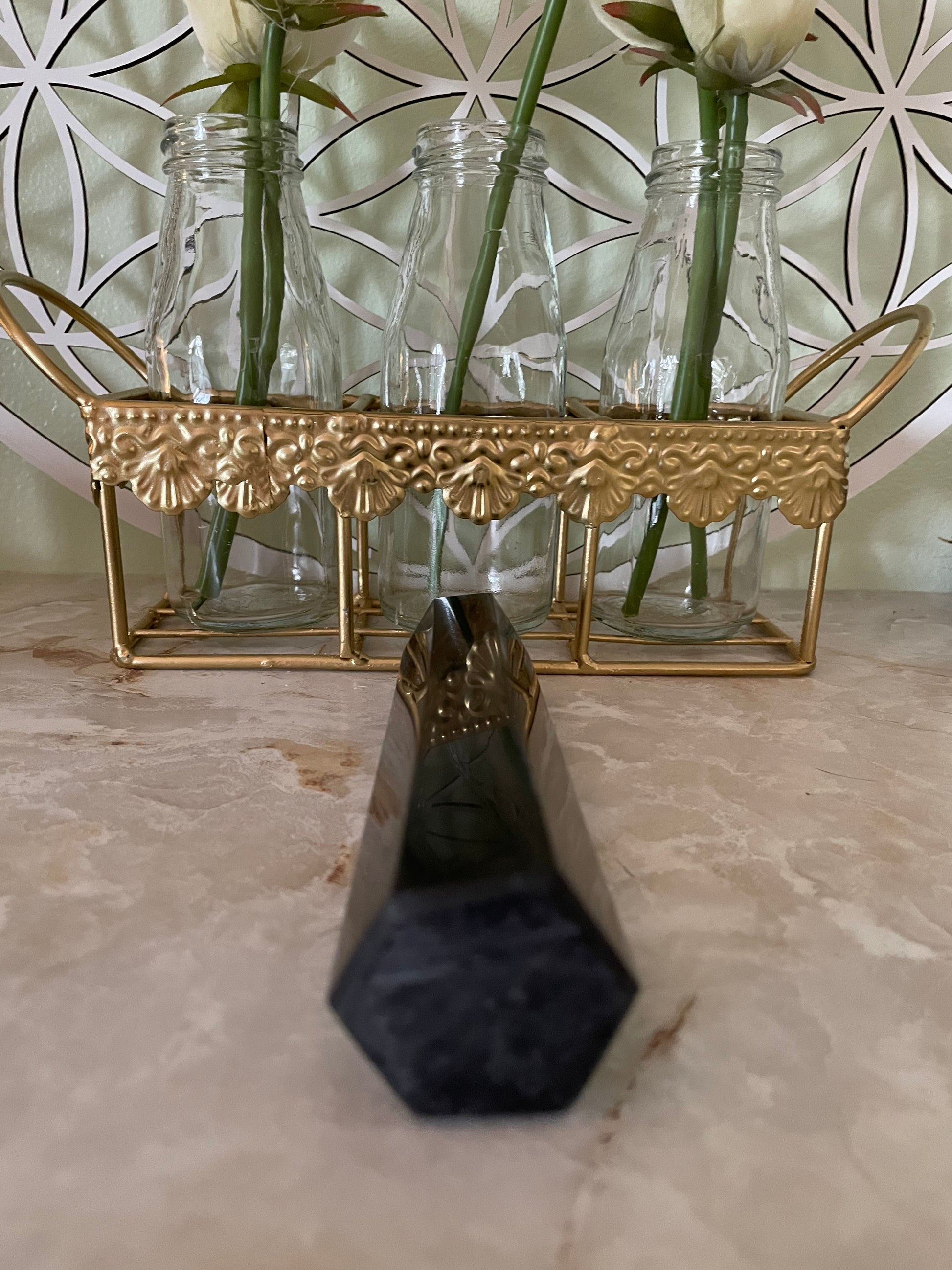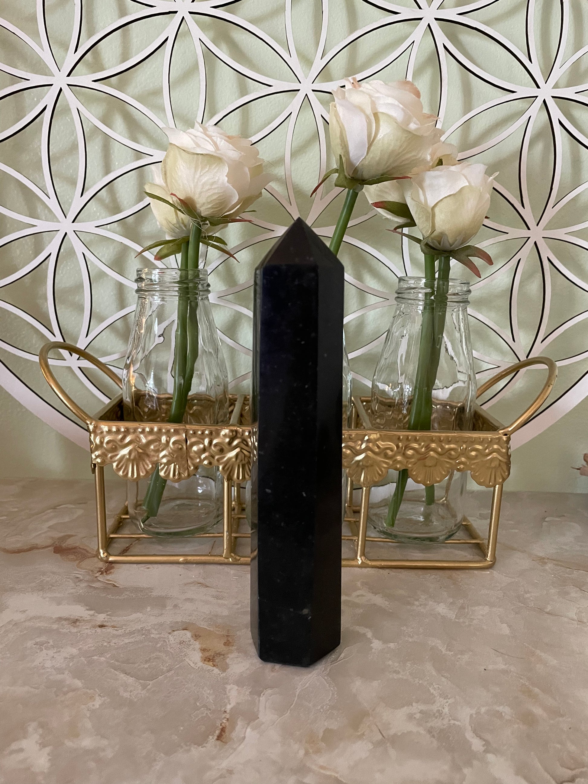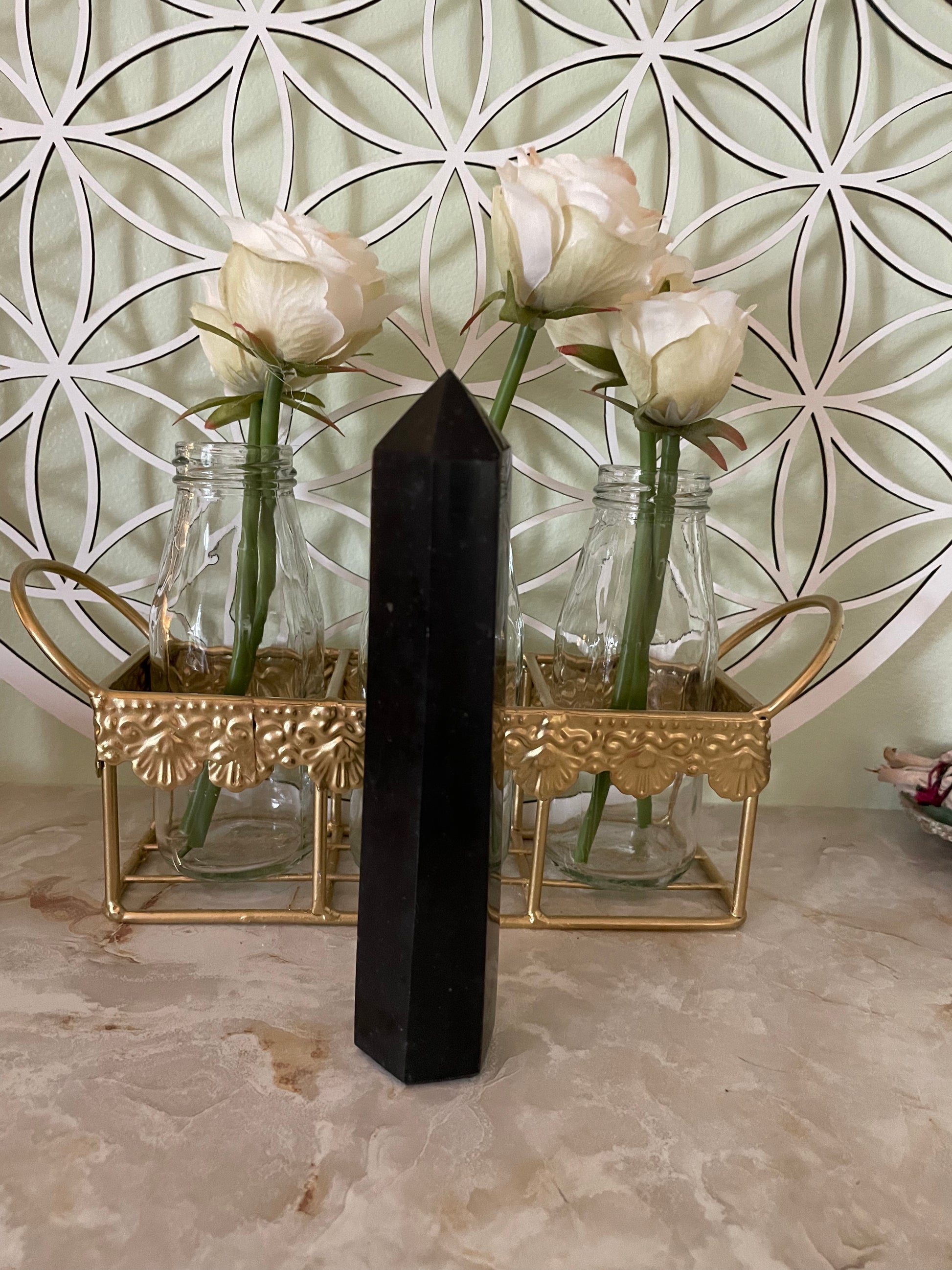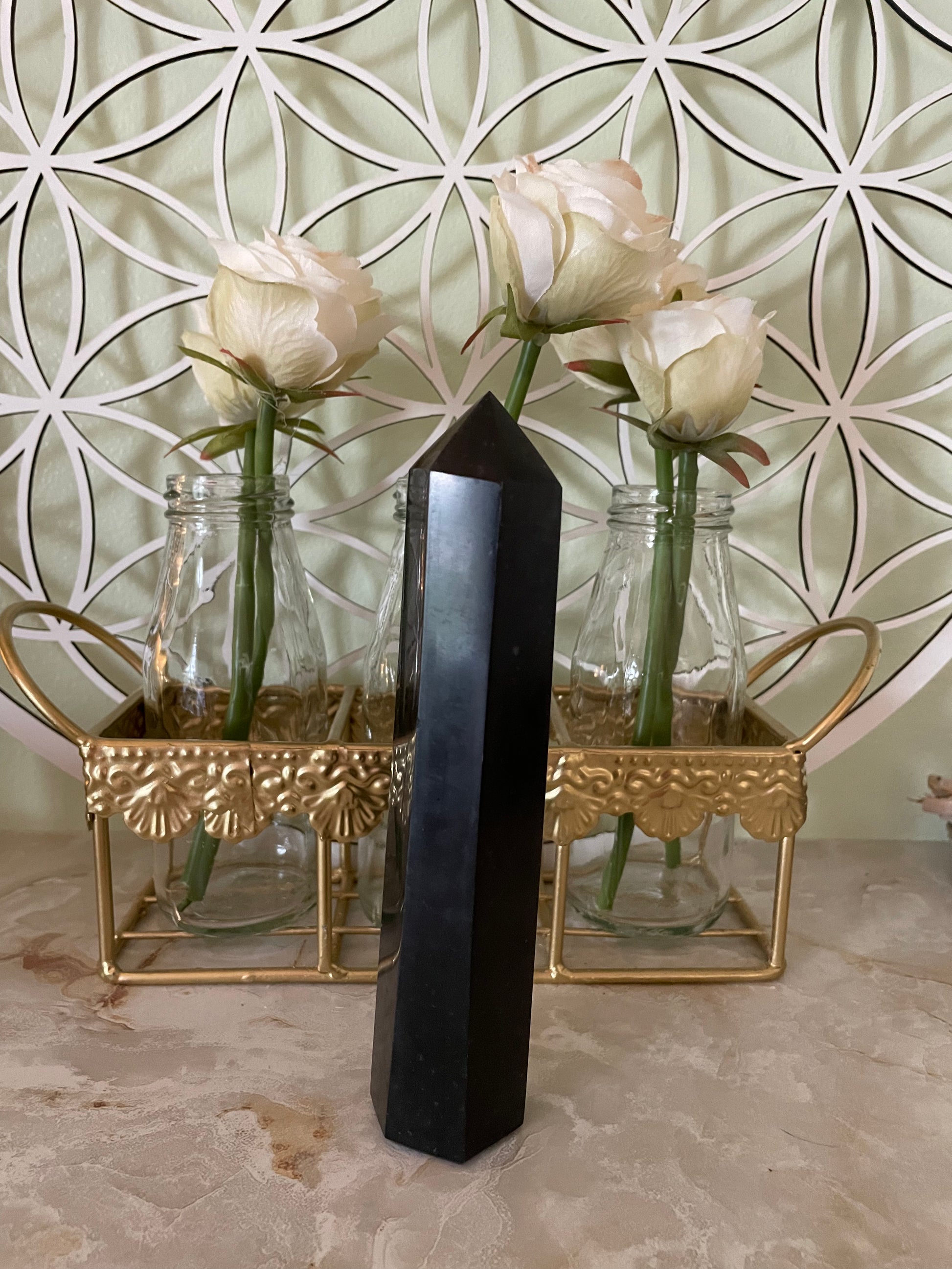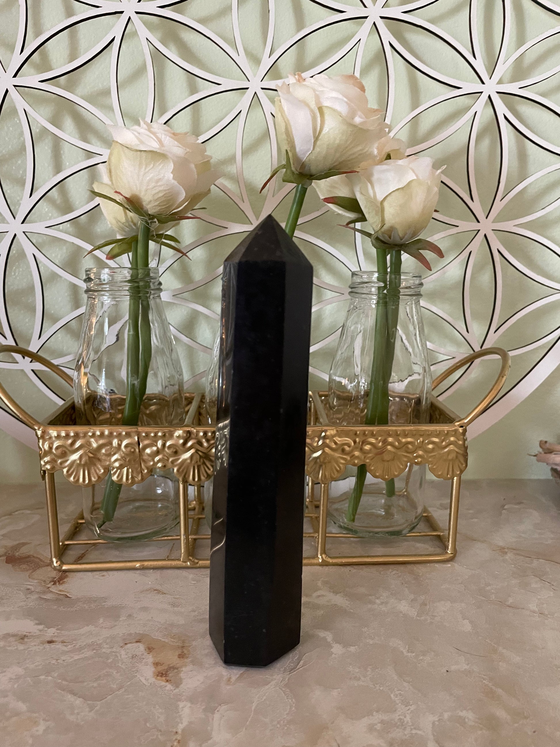Black Tourmaline absorbs negativity at such a high level that it should be cleansed and re-charged often. This magnificent point is approximately 6.5 tall and weighs 11.8 ounces.