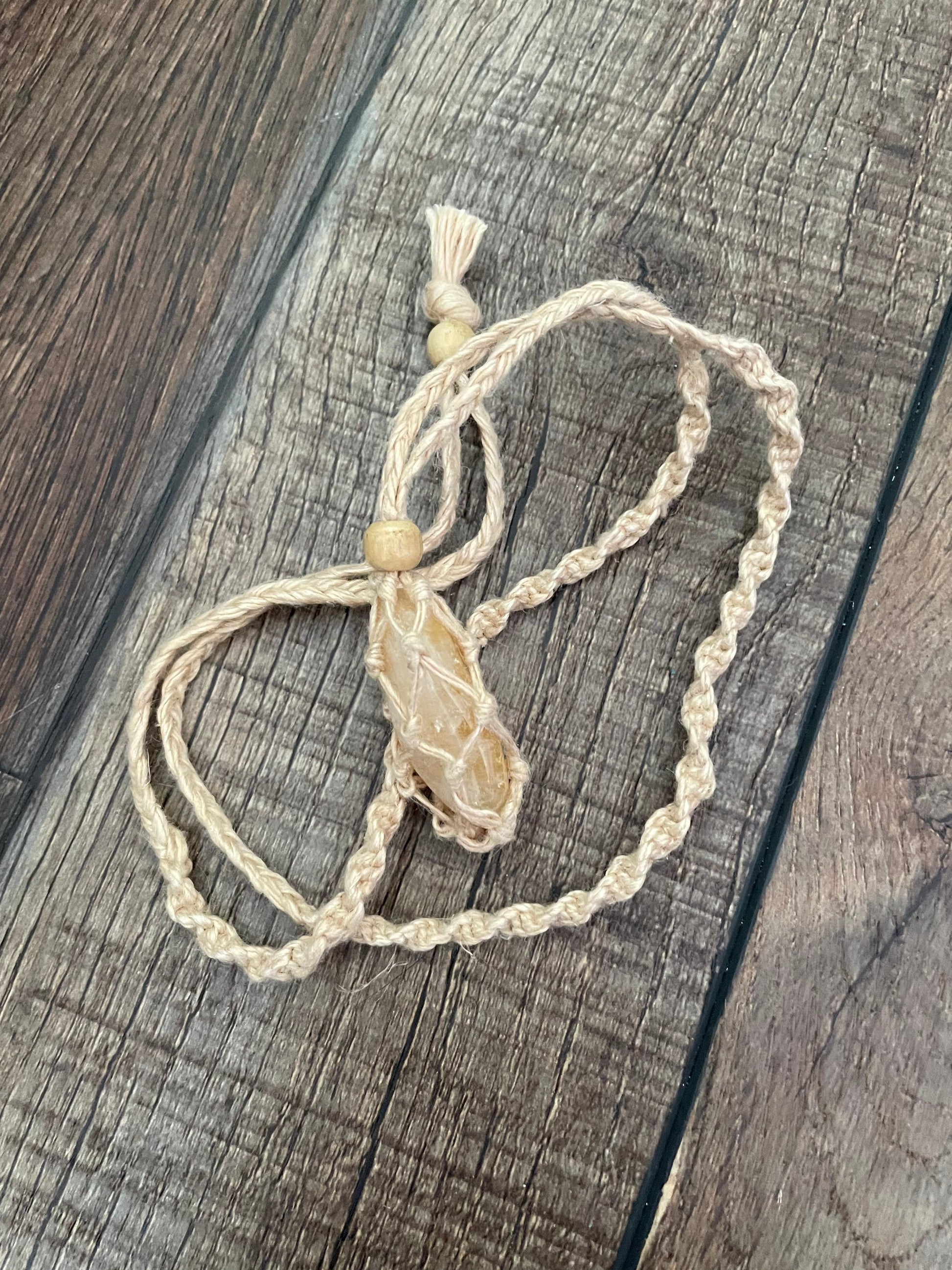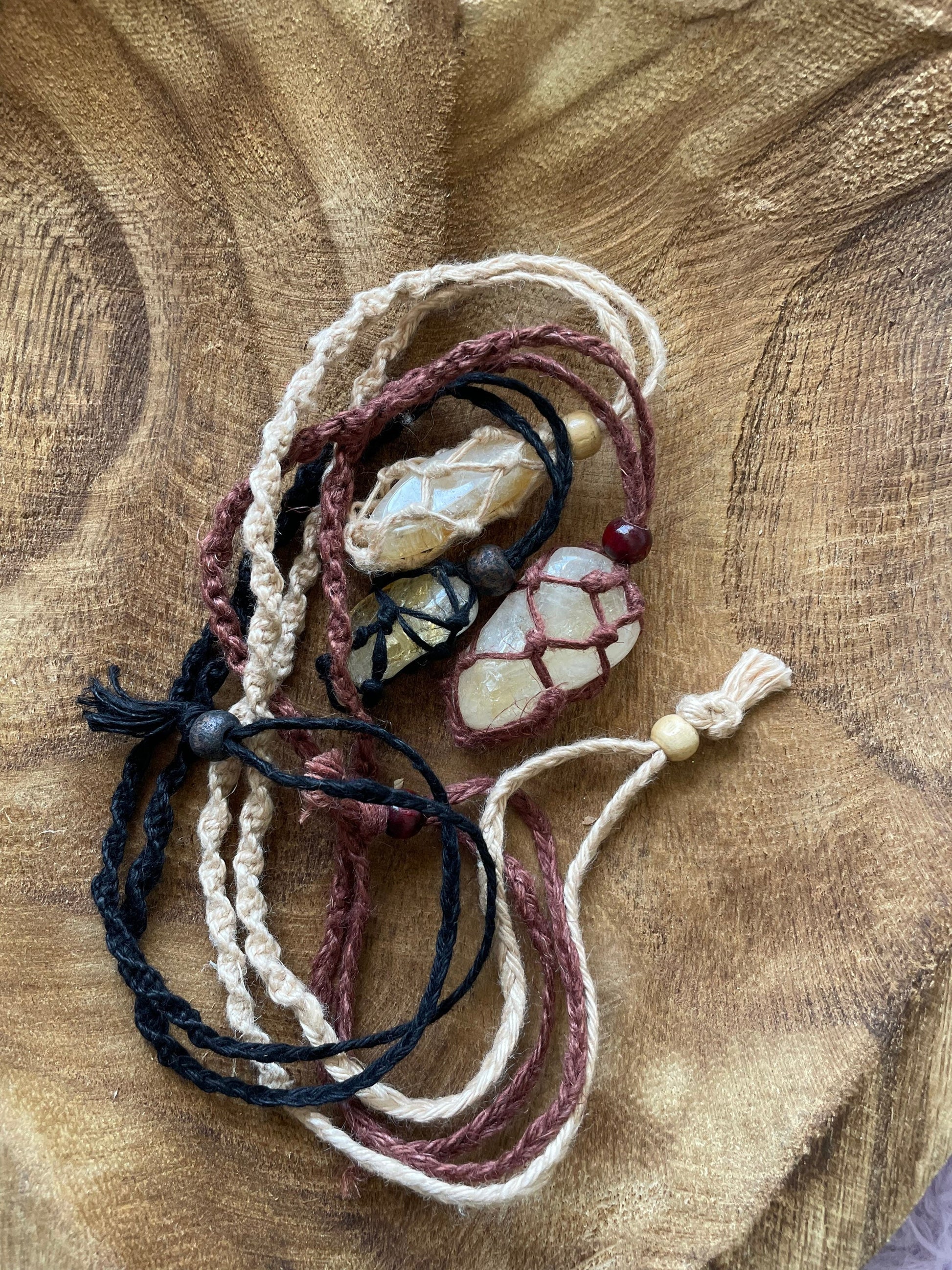 Uniquely crafted Hemp Macramé necklace with Citrine crystal three colors to choose from