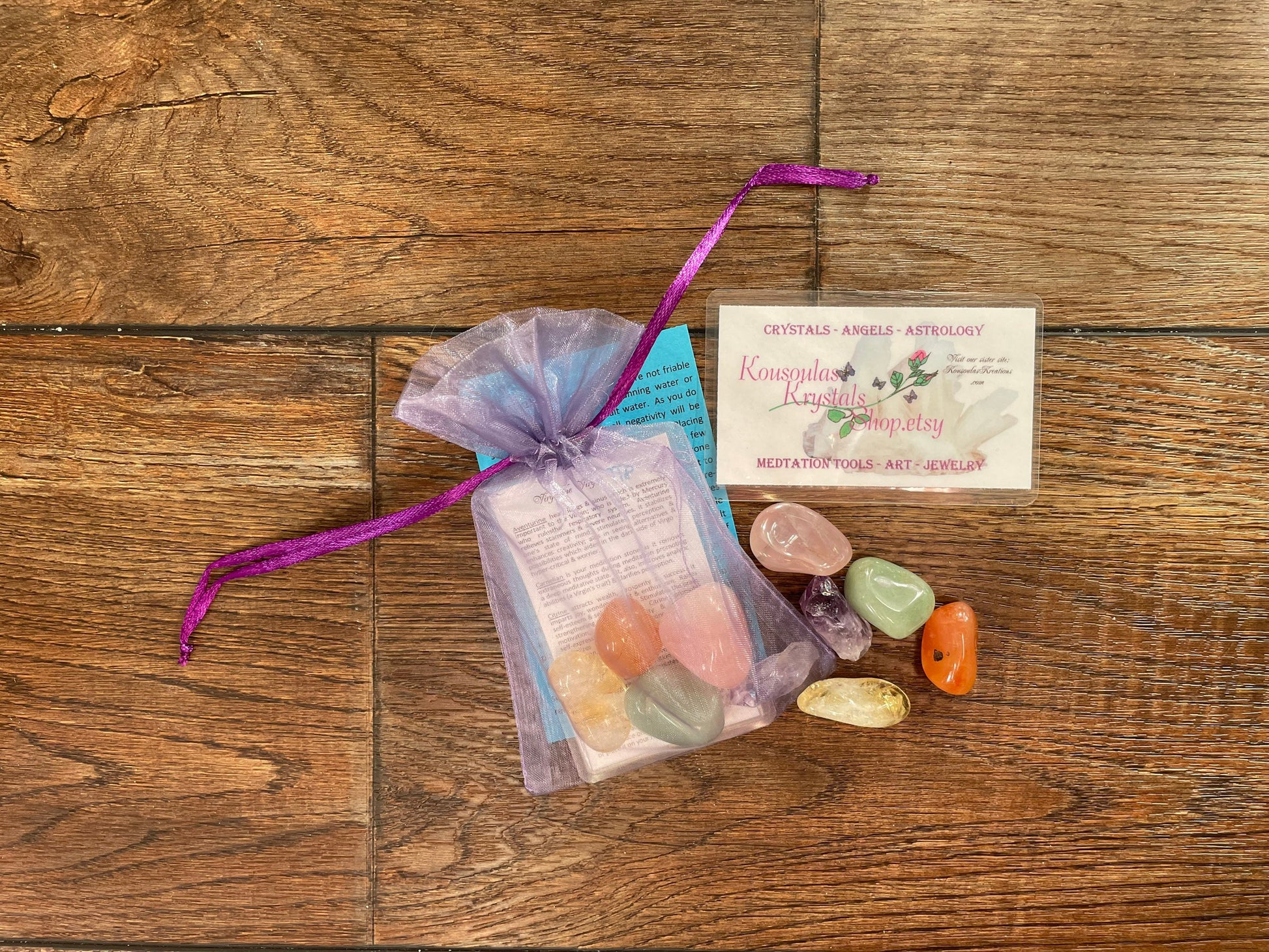 Please look to pictures to see all that is included with this set; stones may be raw or tumbled. Because these are natural products, no stone will be alike.